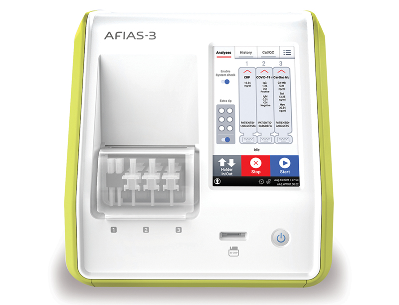AFIAS-3Àº 3°³ÀÇ µ¶¸³ÀûÀΠä³ÎÀÌ ÀÖ´Â ´Ù¸ñÀû ¼ÒÇü ¸é¿ª ºÐ¼® ÀåºñÀÔ´Ï´Ù. AFIAS-3Àº µ¿½Ã¿¡ 3°¡Áö °Ë»ç°¡ °¡´ÉÇÏ¿© ½ÉÀå, È£¸£¸ó, ¿°Áõ °Ë»ç µî ´Ù¾çÇÑ ÆÐ³Î °Ë»ç¸¦ Á¦°øÇÒ ¼ö ÀÖ½À´Ï´Ù. AFIAS-3Àº ´Ù¸ñÀû¼º°ú Æí¸®ÇÔÀ¸·Î ¼Ò±Ô¸ð ½ÇÇè½Ç ȤÀº Áß¼ÒÇü º´¿ø ¹× °³ÀÎ º´¿ø¿¡¼ ¸Å¿ì À¯¿ëÇÏ°Ô »ç¿ëµÉ ¼ö ÀÖ½À´Ï´Ù.